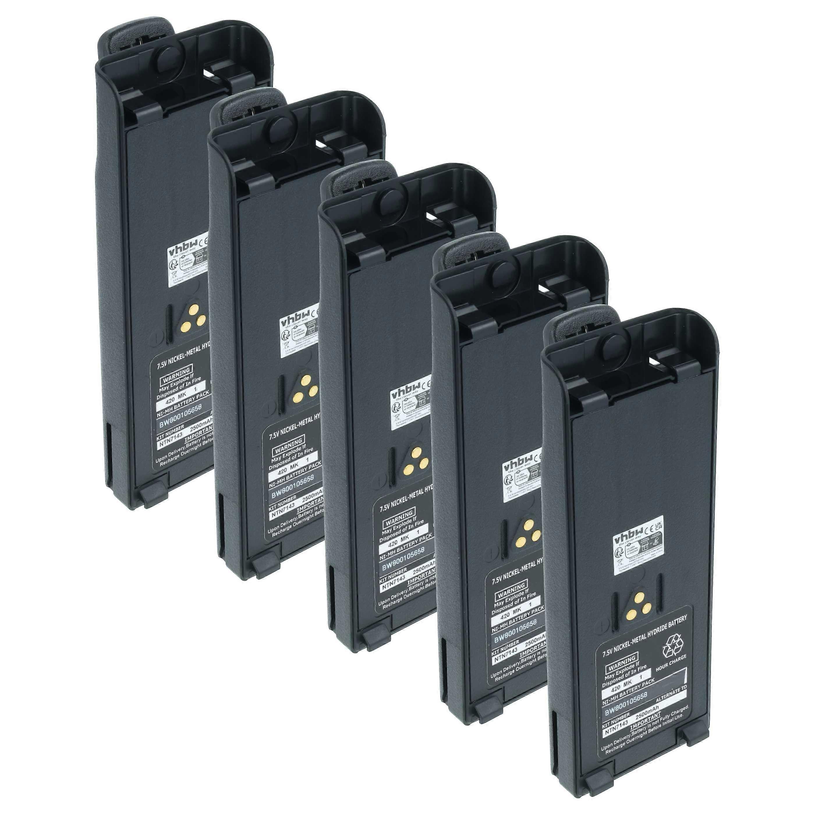 vhbw 5x Akku kompatibel mit Motorola GP900, HAT100, GP1200, GP2013, GP2010, HT1000 Funkgerät, Walkie Talkie (2500 mAh, 7,5 V, NiMH) + Gürtelclip