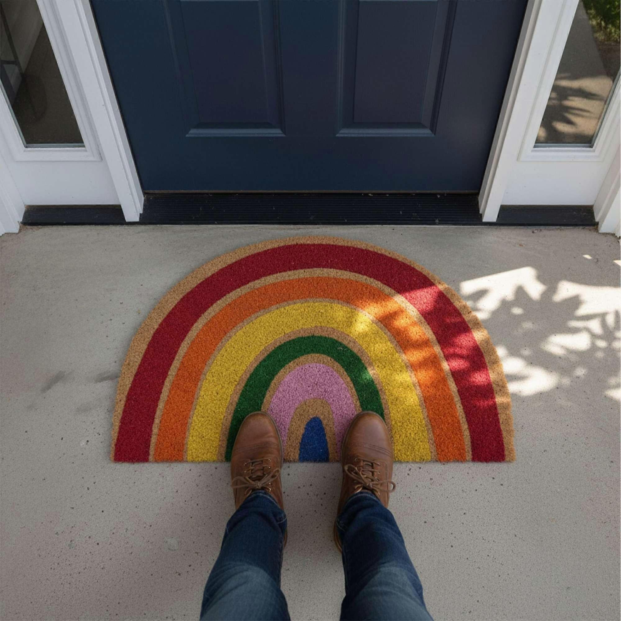 Halvrund dörrmatta i kokos, 80x50 cm, halkfri