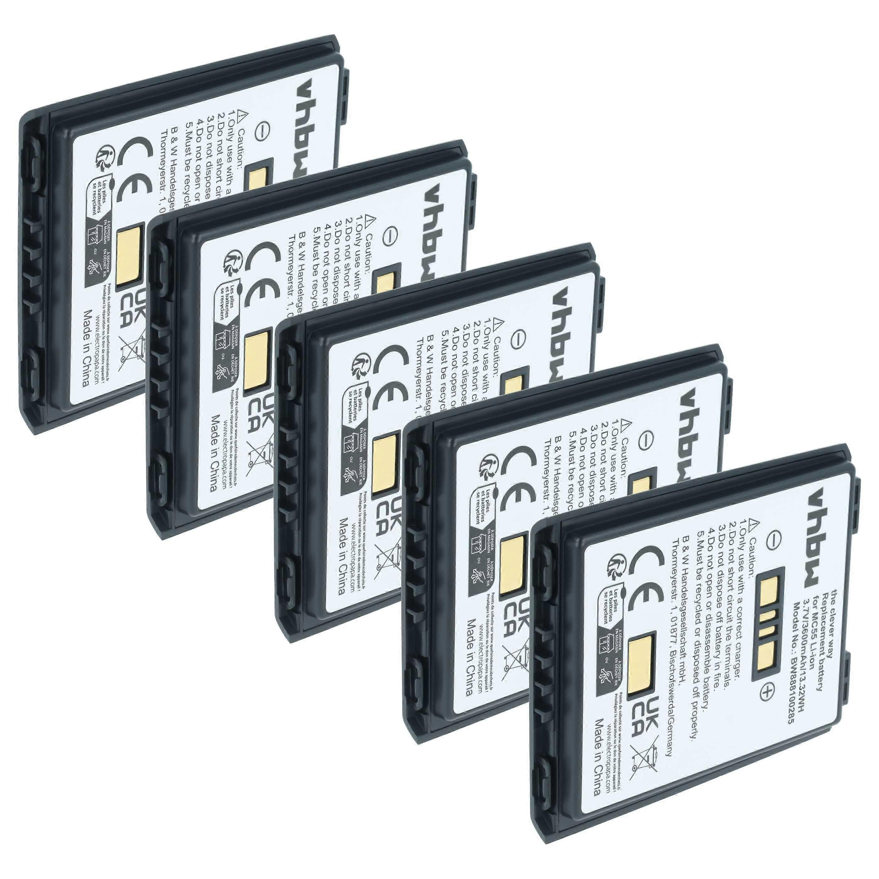 vhbw 5x Akku kompatibel mit Symbol MC55, MC65, MC56, MC659B, MC659, MC5590, MC5574, MC55A0, MC55A Mobilcomputer PDA Scanner (3600 mAh, 3,7 V, Li-Ion)