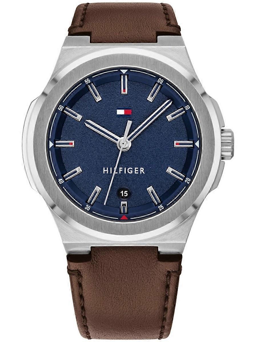 Söker du efter en autentisk Tommy Hilfiger herrklocka? Då har du kommit till rätt ställe På ÅKSTRÖMS kan du köpa Tommy Hilfiger Princeton 1791645 herrklocka Denna analog klocka från Tommy Hilfiger har ett armband i äkta läder och i färgen brun. Kompletteras med en urtavla i färgen blå. Den kvarts (batteri) drivna klockan har datum / minut / sekund / timme funktioner och glaset på Tommy Hilfiger Princeton 1791645 herrklocka har 44 mm i diameter. Ett mycket bra val för herrarna