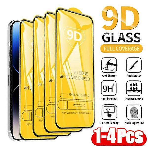 1-4 pcs 9D Protective Glass compatible with iPhone 16 15 14 13 12 11 Pro Max, XR/X/6/6S Plus, Tempered Screen Protector