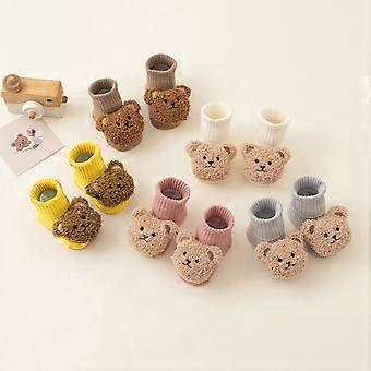 1Pair Infant Warm Boots Baby Boys Girls Cartoon Bear Winter Shoes Breathable Socks Short Stocking Toddlers First Walkers Yellow