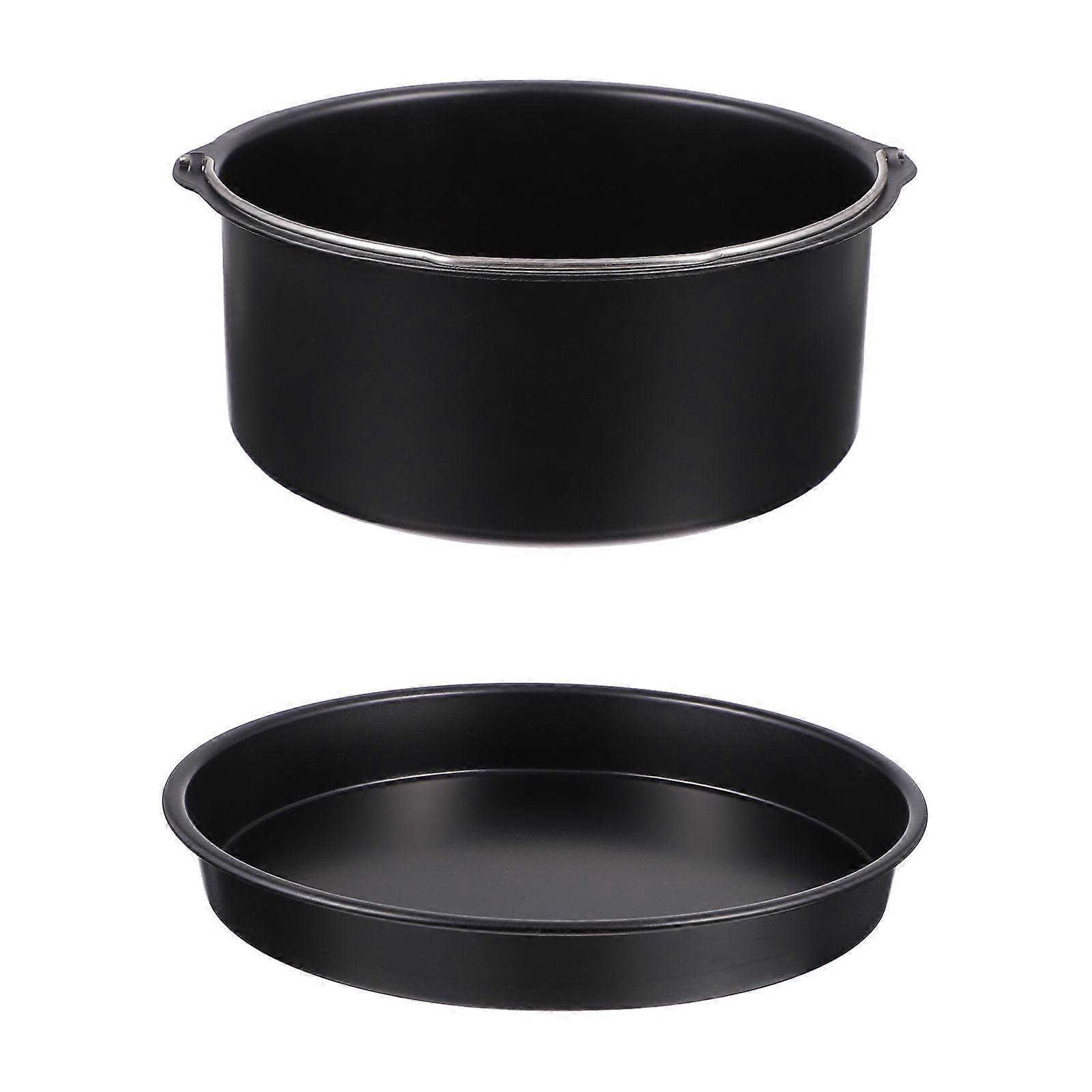 1 Set/2PCS 8 inch Air Fryer Accessories with Carbon Steel Cake Barrel Pizza Pan
