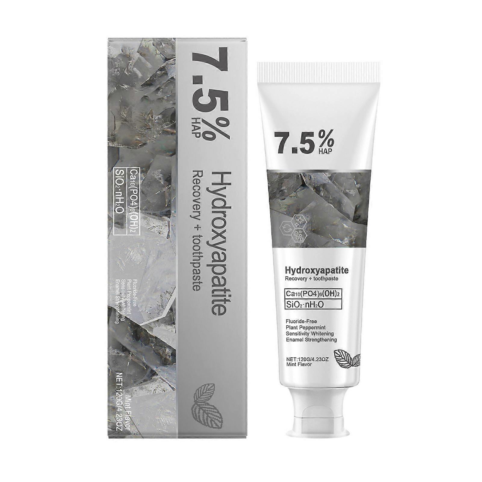 Features: Hydroxyapatite Formula: Our Hydroxyapatite Daily Care Toothpaste contains 7.5% hydroxyapatite, effectively restoring enamel and promoting overall oral health for a brighter smile. Whitening And Freshness: Experience fresh breath and teeth whitening with our specialized formula, designed to remove stains while leaving your mouth feeling clean and revitalized. Sensitivity Relief: This toothpaste provides gentle sensitivity relief, making it suitable for adults, men, women, and the elderly, ensuring a comfortable brushing experience for everyone. Family-Friendly Care: Perfect for home use, our 120g tooth care toothpaste is ideal for families, promoting good oral hygiene for all ages while keeping smiles healthy and bright. Deep Cleaning Action: Our oral health deep clean toothpaste penetrates hard-to-reach areas, effectively removing plaque and debris, ensuring a thorough clean for optimal dental health. Specifications: Shelf Life: 3 years Net Content: 120g Include: 1*Toothpaste