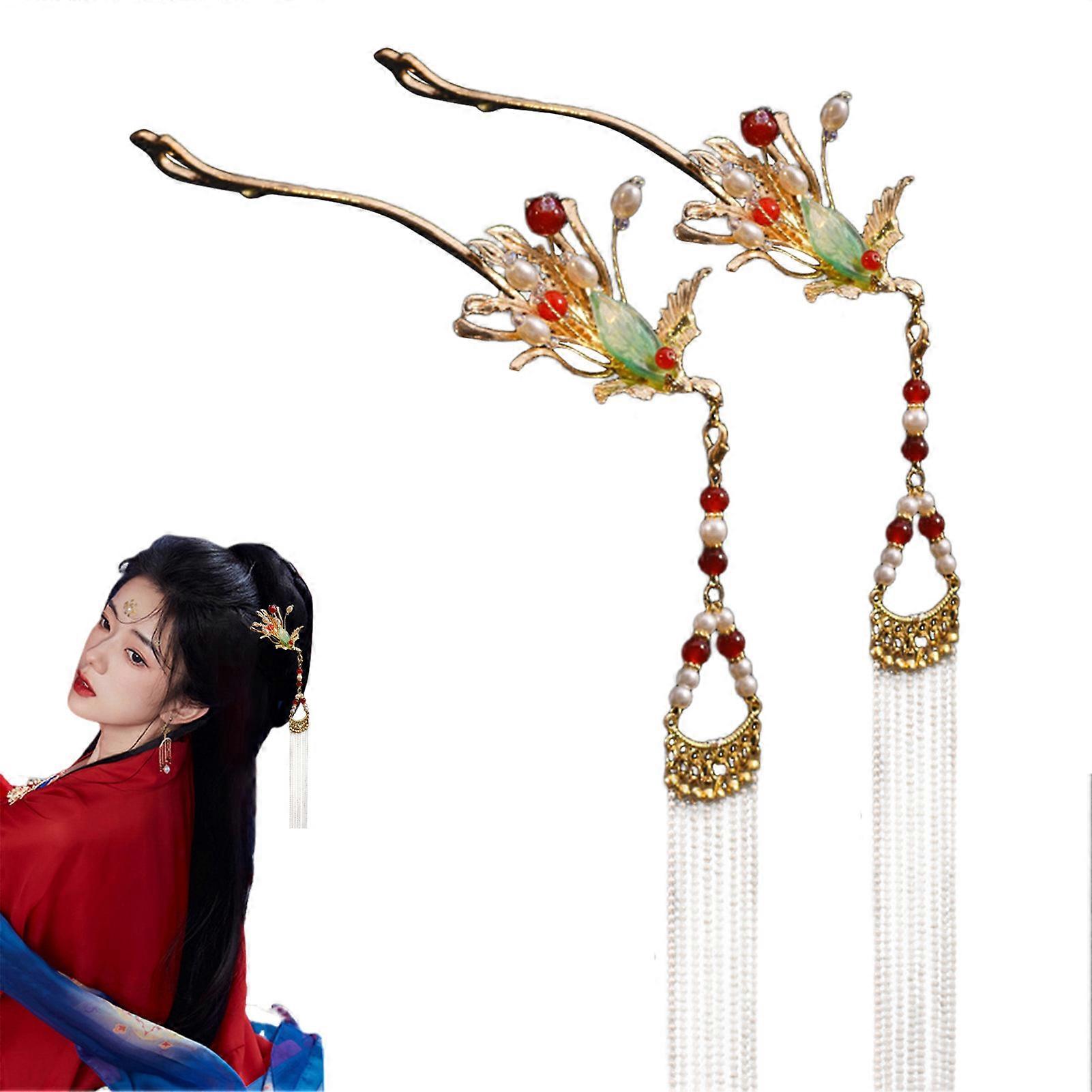 Features : Exquisite Design: This female hairpin features a long tassel that adds a touch of elegance and sophistication to any hairstyle. Its new Chinese retro style is a perfect blend of tradition and modernity, making it a fashionable accessory for women. Phoenix Decor: The Chinese hair clasp sticks are adorned with beautiful phoenix decorations, symbolizing grace and beauty. This intricate design adds a touch of cultural charm to your hairstyle, making it perfect for special occasions or everyday wear. Secure and Comfortable: These fine pattern setting elegant hair chopsticks are designed to provide stable grips, ensuring that your hair stays in place all day long. The high-quality materials used in their construction make them comfortable to wear, even for extended periods. Delicate Pearls and Long Tassel: The hair jewelry accessories are embellished with delicate pearls and a long tassel setting, adding a touch of glamour and sophistication. These exquisite details make them perfect for festival, wedding, or party hair decorations. Versatile Usage: Suitable for women wearing wedding hanfu, cheongsam, or for girls and hairdressing salons, these hairpins are versatile accessories that can complement various hairstyles and outfits. They are perfect for adding a touch of elegance and charm to any occasion. Specification : Material: Alloy Gender: Women Notes: 1. The real color of the item may be slightly different from the pictures shown on website caused by many factors such as brightness of your monitor and light brightness. 2. Please allow slight manual measurement deviation for the data. Include: Choice 1: 1 Pair * Hairpin or Choice 2: 1 * Hairpin