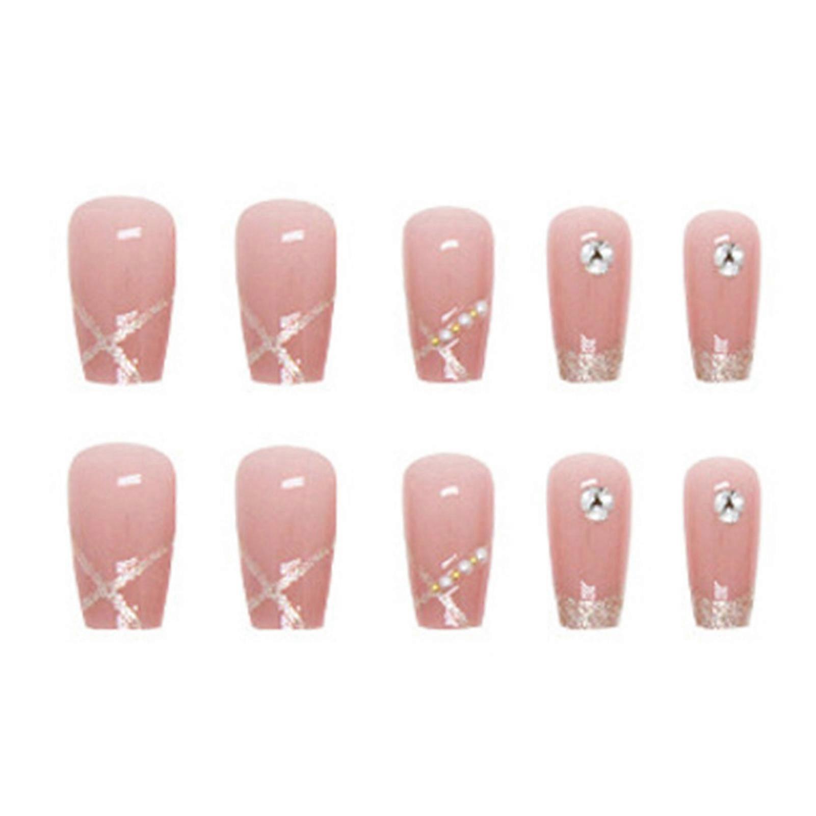 Features: Long-lasting and Trendy: These long square press-on nails are designed to stay on for extended periods, ensuring you have beautiful nails for weeks. The finished nail tips provide a professional salon look, making your manicure appear perfect. Easy Application and Removal: These salon fake nails are press-on, allowing for quick and hassle-free application. Additionally, they can be easily detached without causing damage to your natural nails. This DIY wearable manicure patches make it convenient for women and girls to achieve salon-quality nails at home. Stylish and Eye-catching Design: The pink color with pearl design false nails adds a touch of elegance to your overall look. The shiny rhinestone decor and glitter pearl enhance the visual appeal, making your nails stand out. These nails are perfect for nail art starters who want to experiment with different styles and designs. Versatile and Suitable for All Occasions: These nails are suitable for both women and girls, catering to a wide range of preferences. Whether it's for everyday wear or special events, these nails can be easily match any outfit or occasion, adding a touch of glamour to your nails. Quality and Durable: Crafted with attention to detail, these nails are made from premium materials to ensure durability and longevity. They are designed to withstand daily activities and maintain their perfect appearance. Perfect for women who want nails that not only look great but also last. Specifications: Material: Plastic Style: Sweet Note: Due to the screen lighting effect, the actual color of the product may be slightly different. Due to manual measurement, please allow size error. Include: 24*Fake Nails (with Glue)