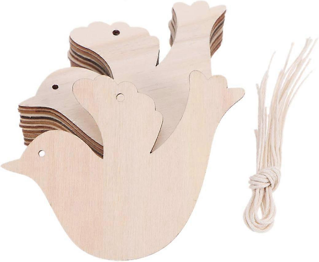 10 Pieces Hanging Pendant Bird Wooden DIY Craft Ornaments for Christmas Tree Decoration