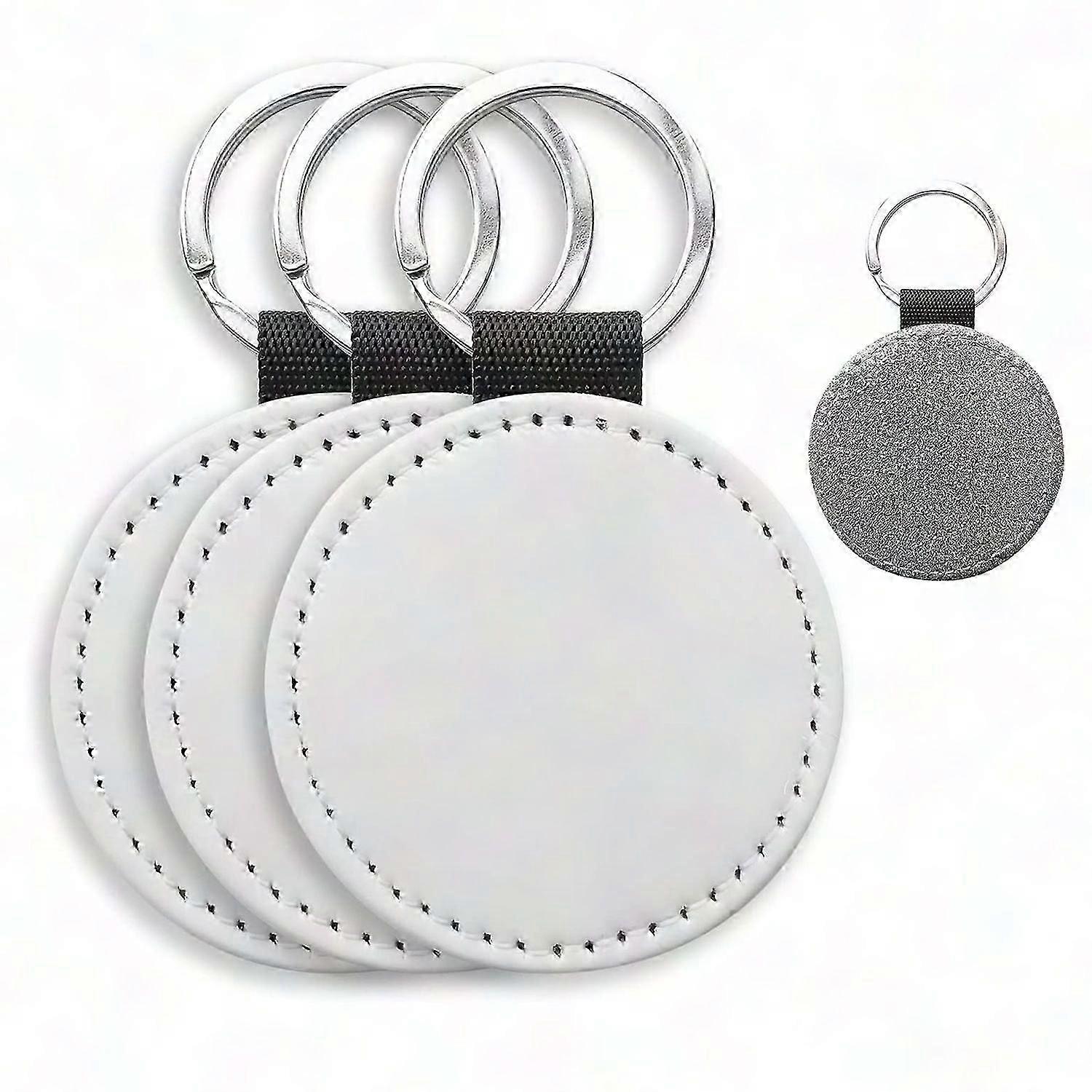 10 Pack Sublimation Keychain Blanks, Glitter PU Leather DIY Heat Transfer Keyrings (Silver Round)