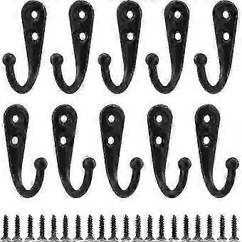 10-Pack Black Wall Hooks with Screws for Hanging Coats, Jackets & Hats - Heavy Duty Coat Rack Hangers