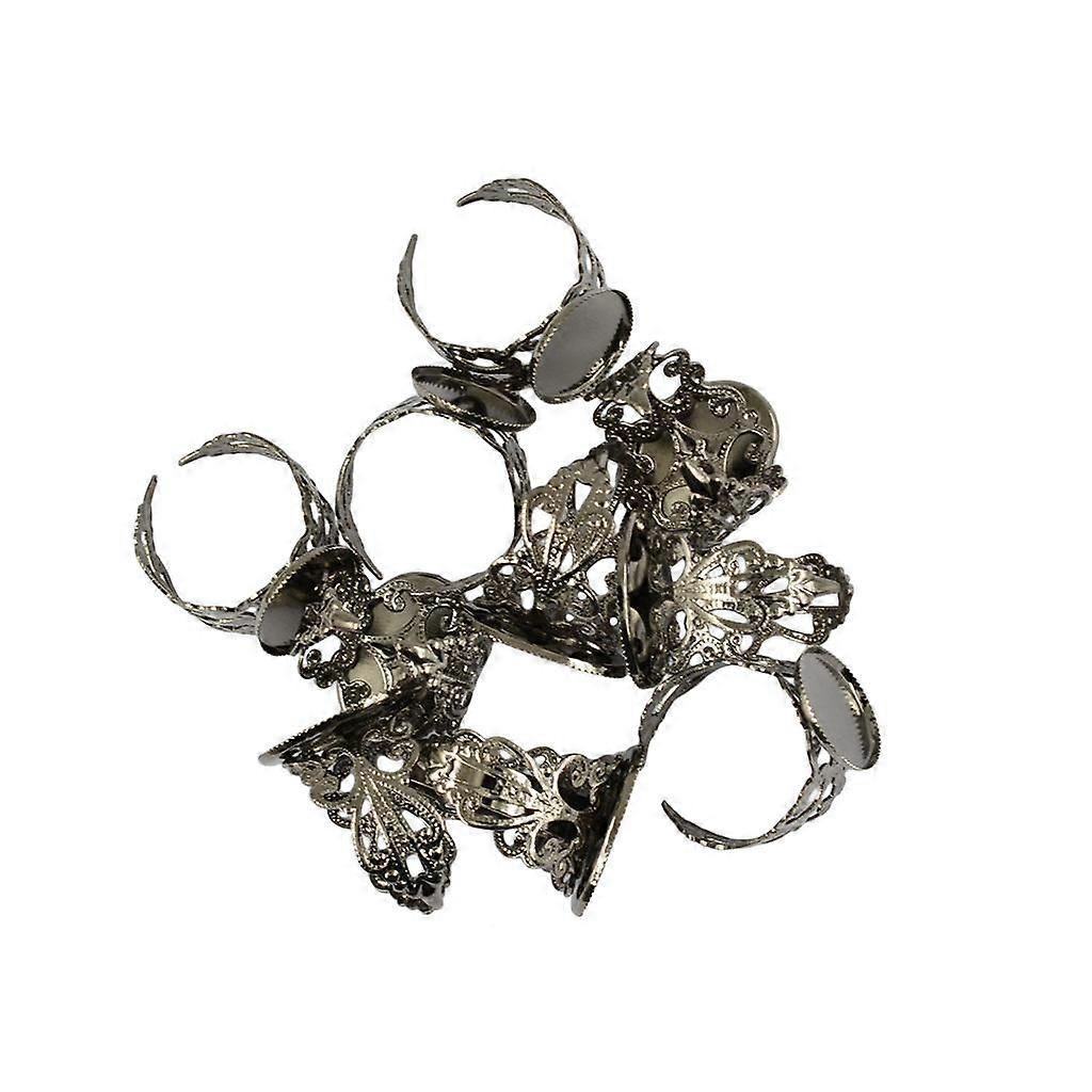 10 Piece Adjustable Brass Blank Bezel Filigree Flower Ring DIY Making Black