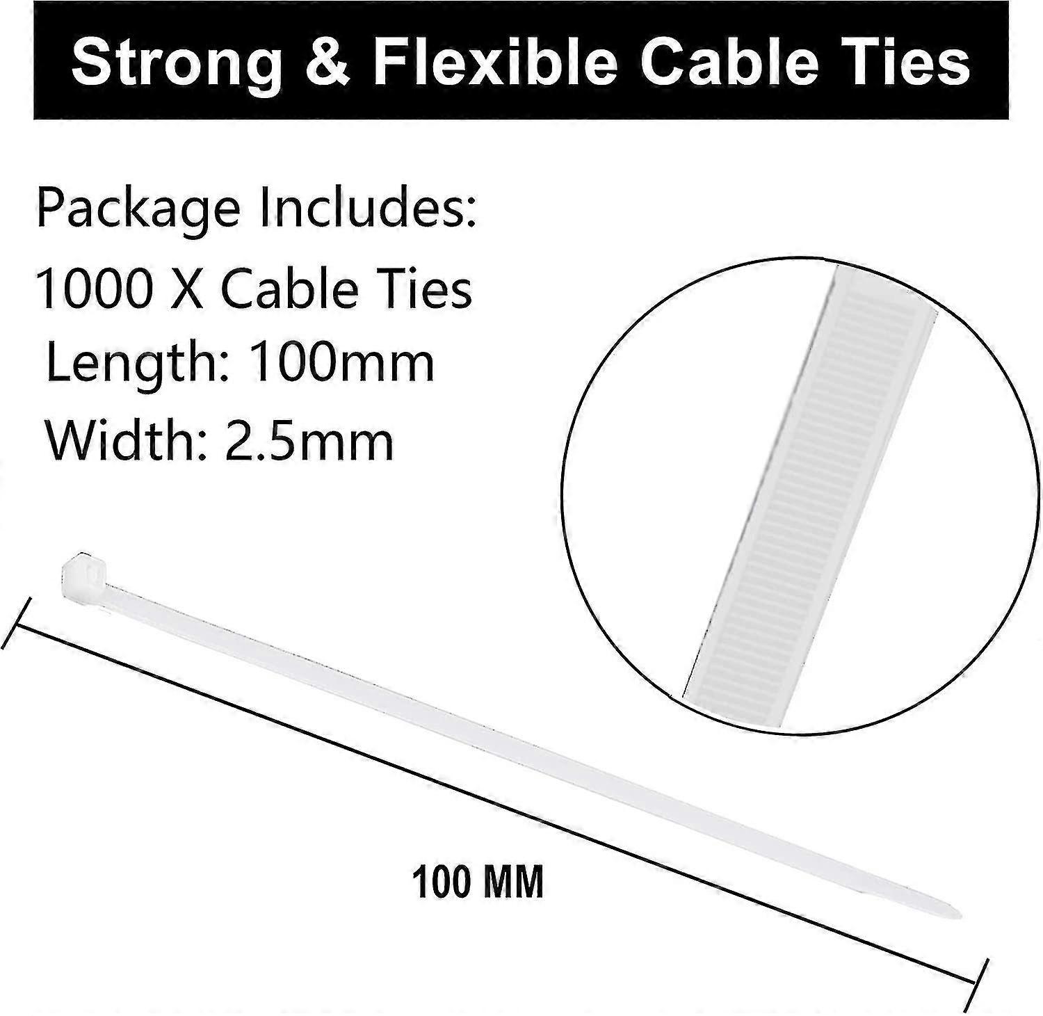100mm X 2.5mm UV and Heat Resistant Cable Ties Pack of 1000 Pieces