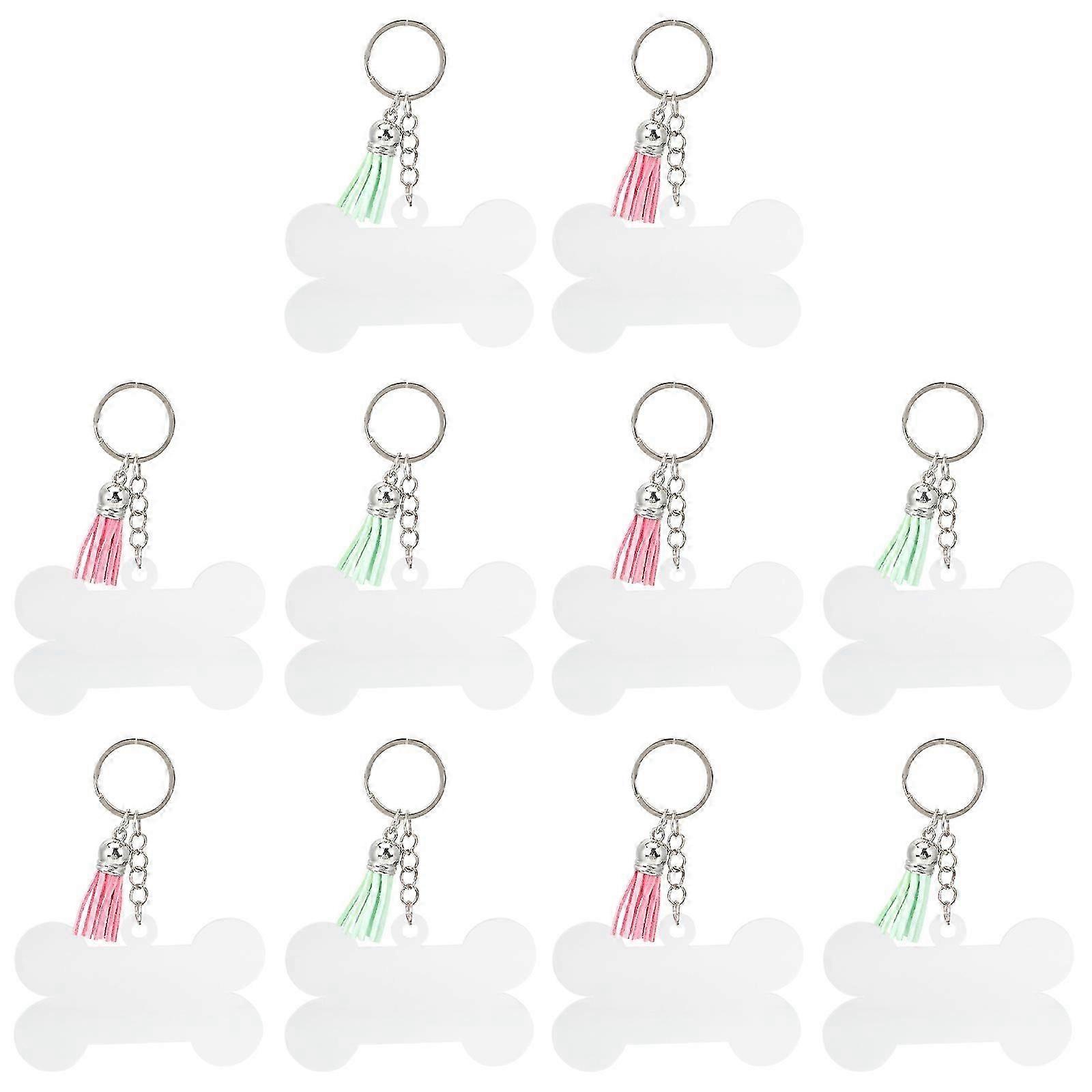 10pcs Creative Bone Charm Keychain Pendant Sublimation Blanks Keychains with Tassels