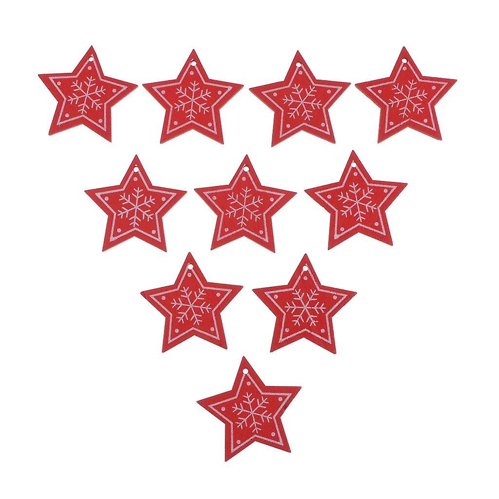 10x snowflake Wooden Pentagram Slice Pieces Five Pointed Star Crafts red