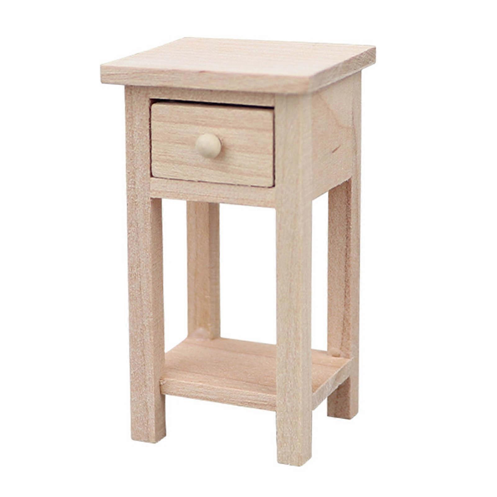 1:12 Doll House Cabinet Wooden High Stool with Drawer DIY Miniature Furniture for Dollhouse Decoration
