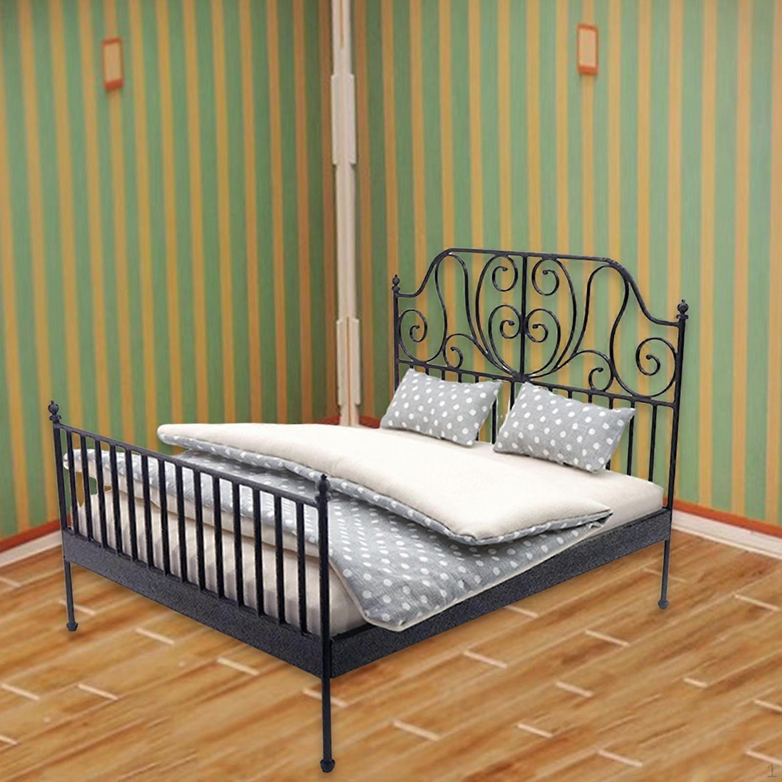 1/12 Double Bed Lifelike Life Scene Bedroom Micro Doll House Accessory Accessories for