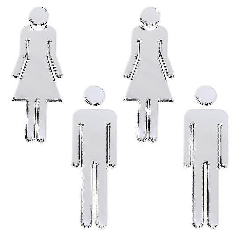 12cm/20cm Silver Facility Identification Signs 4 Pcs Self-adhesive Restroom Sign Men And Women Sign