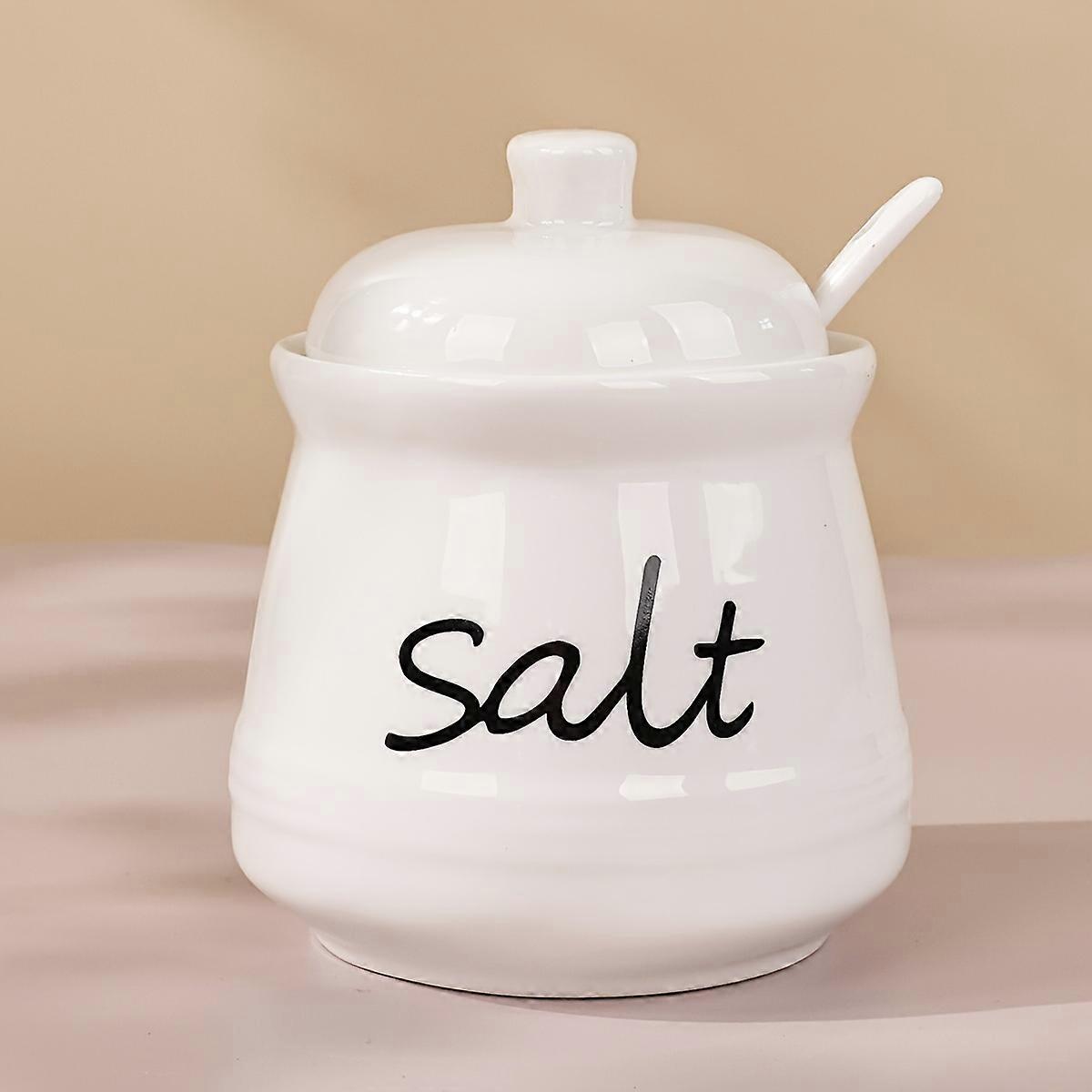 1/2pcs, Ceramic Salt And Pepper Bowl With Lid And Spoon, Salt Pot, Pepper Pot, Salt And Pepper Jar Set, Seasoning Pot Set, Salt And Pepper Container D