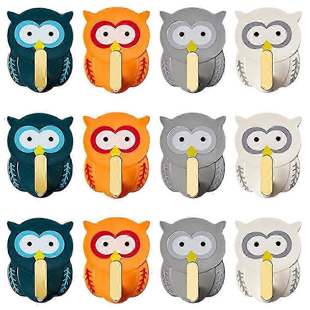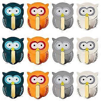 12pcs Cartoon Owl Wall Hanger Wall Hook Coat Hook Multifunctional Hooks Home Wall Decor