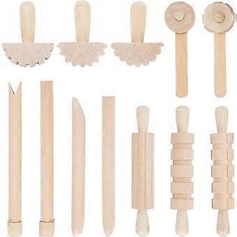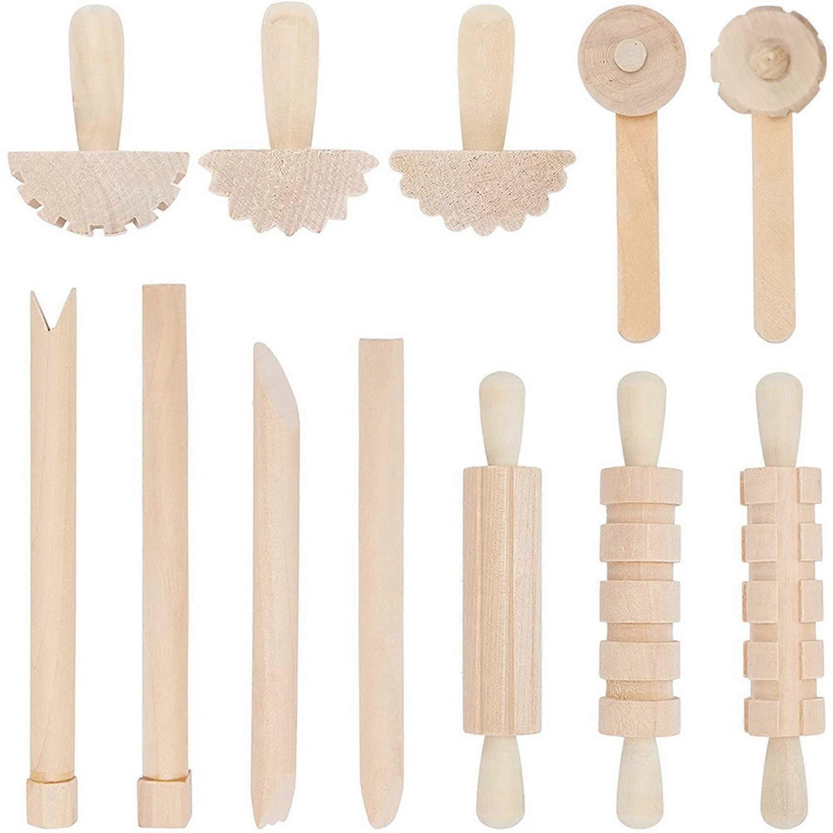 12Pcs Clay and Dough Tools Play Accessories Includes Rollers Hammer Party Pack Wood Pottery Tools Stamps for Clay Art