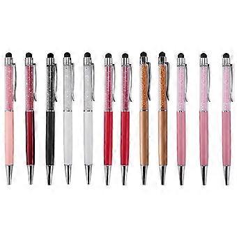 12Pcs/Pack Bling Bling 2-In-1 Slim Crystal Diamond Stylus Pen and Ink Ballpoint Pens (12 Colors)