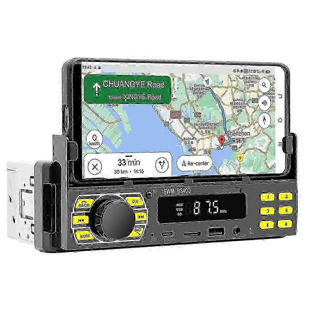 1DIN Car Radio Stereo with Bluetooth, USB/SD/AUX Inputs, Remote Control, and Mobile Phone Holder for UK Drivers