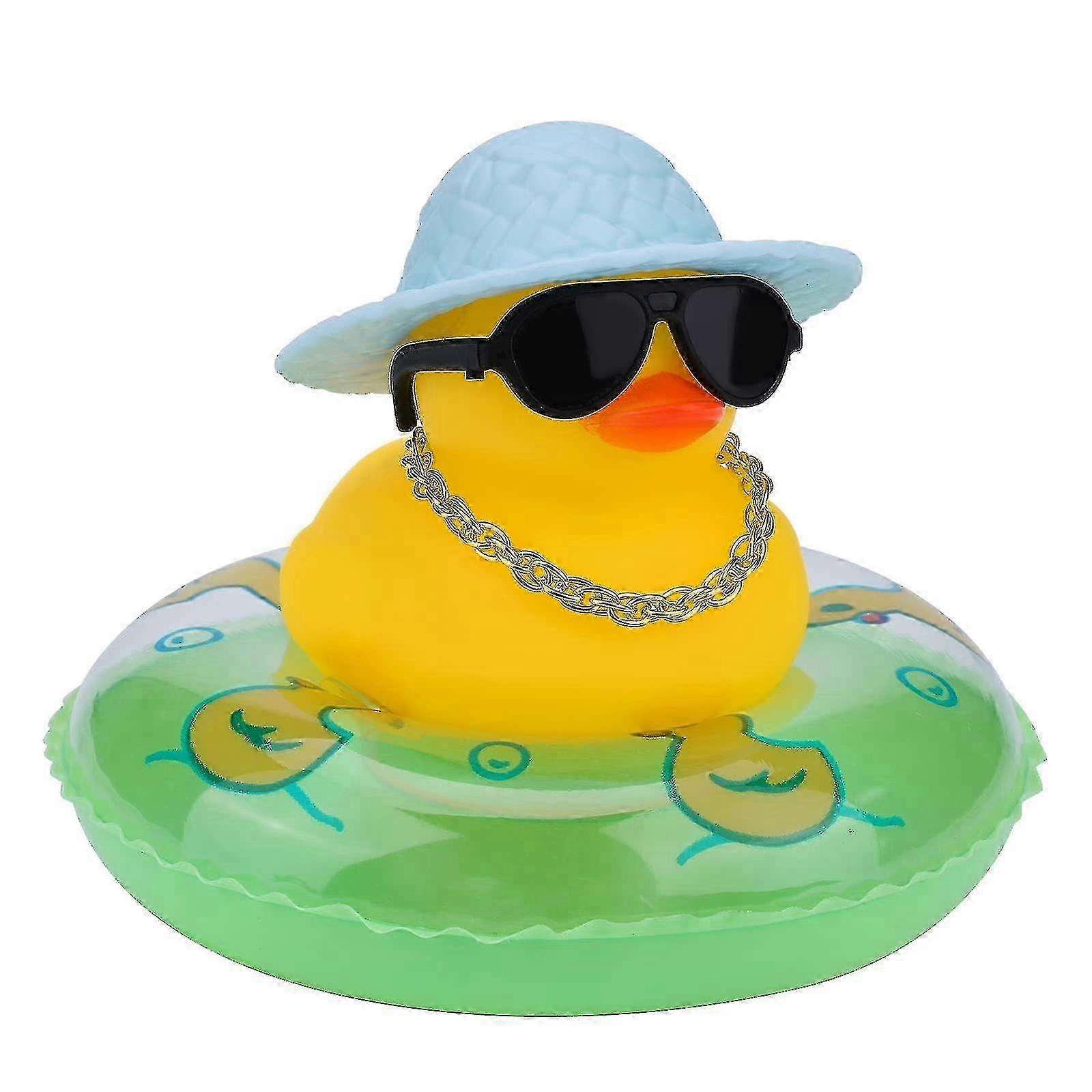 1pc Car Duck Decoration: Little Yellow Rubber with Gold Chain, Hats & Sunglasses for Office & Bedroom Desk