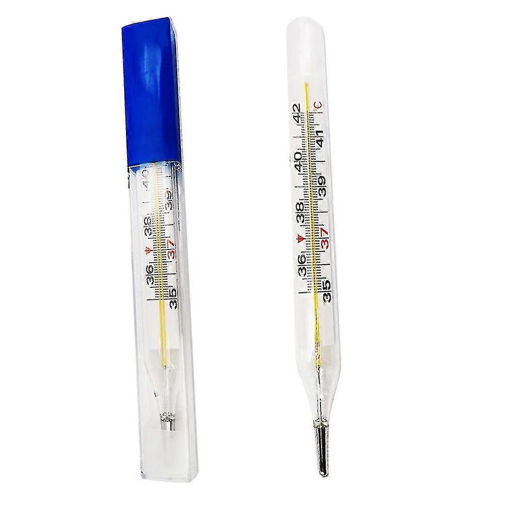 Description This thermometer is made of high-class and premium glass material, practical, durable and safe for use. An accurate and convenient thermometer for fever, body temperature measuring. Multifunctional, can measure adult temperature, children temperature. Features - Color: Blue- Material: Glass- Size: About 12.50X1.50X1.50cm/4.91X0.59X0.59inch- It is convenient, safe and easy to use. This glass thermometer can give you a good experience.- Made of high-class and premium material, it is very practical and durable for long time use.- Easy to read, fast and precise to measure. It can help you a lot in daily life.- Safety thermometer for home and commercial use, a great heath care tool for you.- Family essential thermometer, safe and convenient, It can measure the body temperature quietly.Packing list: 2 x Thermometers"