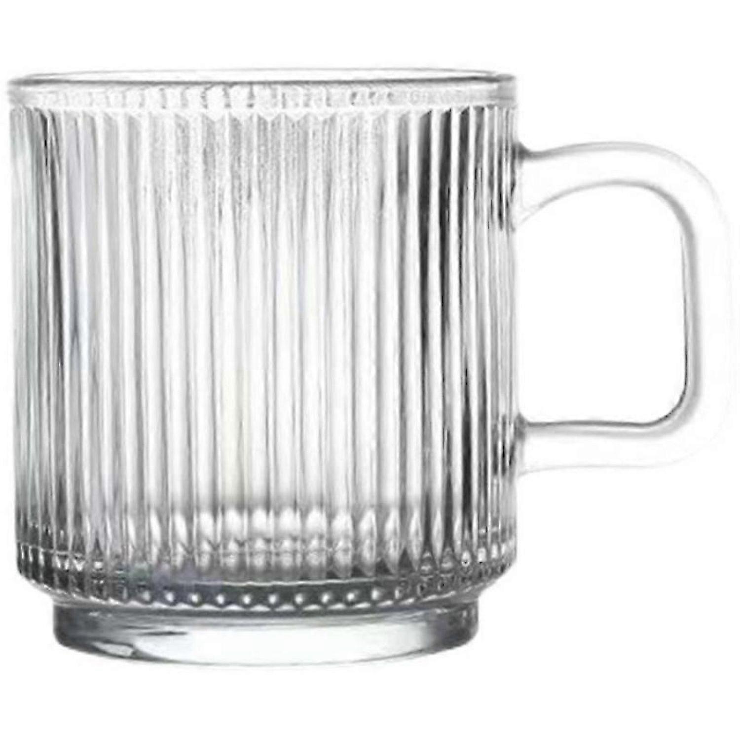 2 Premium Glass Coffee Mugs With Handle, Vertical Stripes Glass Coffee Cups, Transparent Tea Cup -HK908