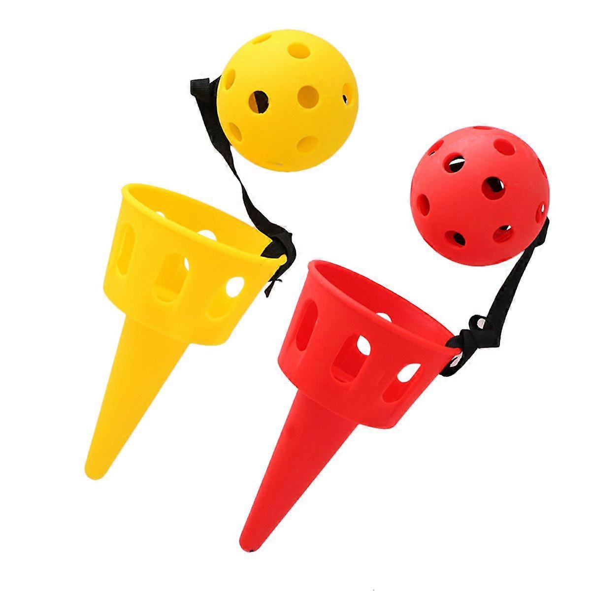 2 Sets of Scoop Ball Toys Throw Chuck Ball Toy Outdoor Activities Ball for Kids (Red and Yellow)