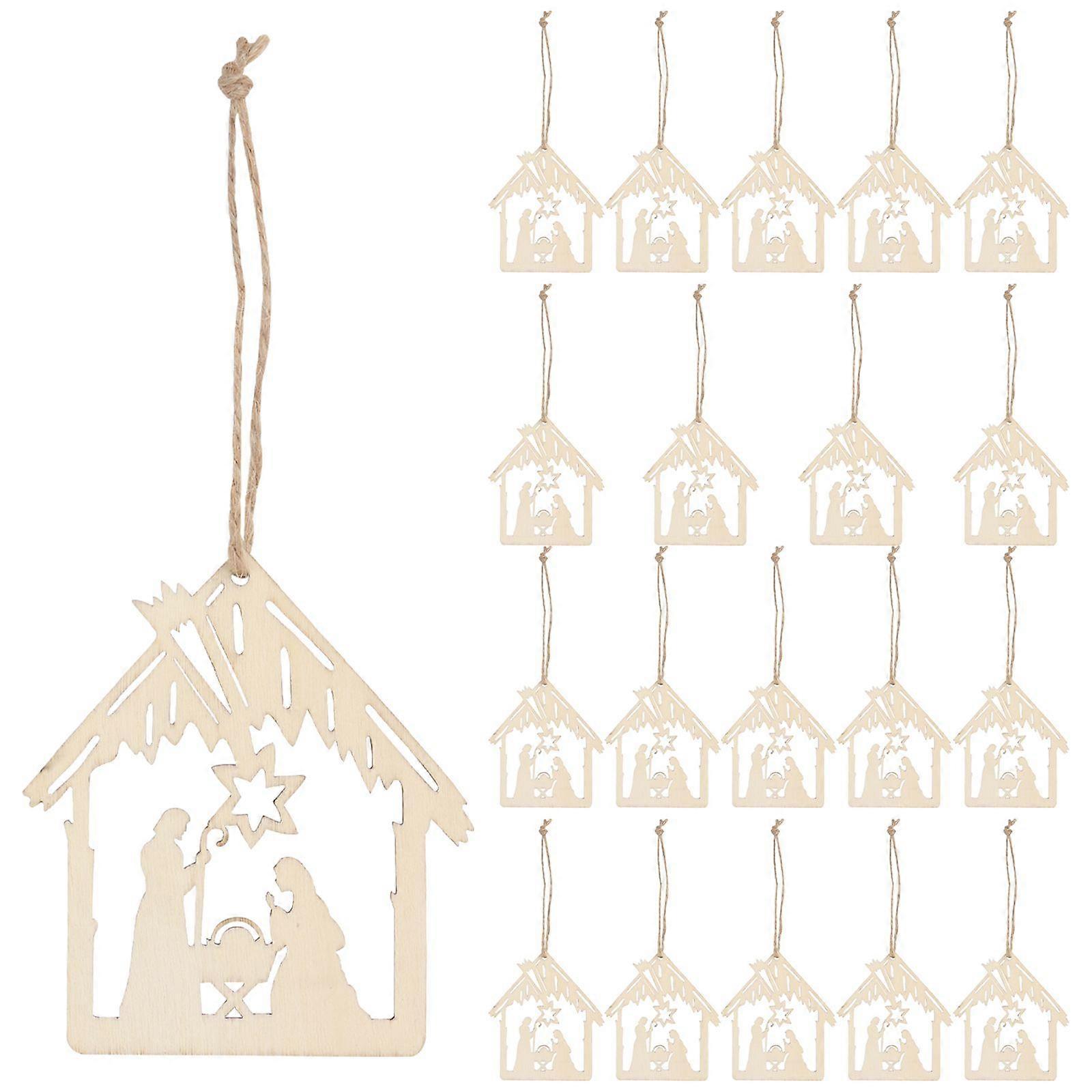 20pcs The Birth of Jesus Pattern Pendant with Hemp Rope Wood Pendent (Khaki)