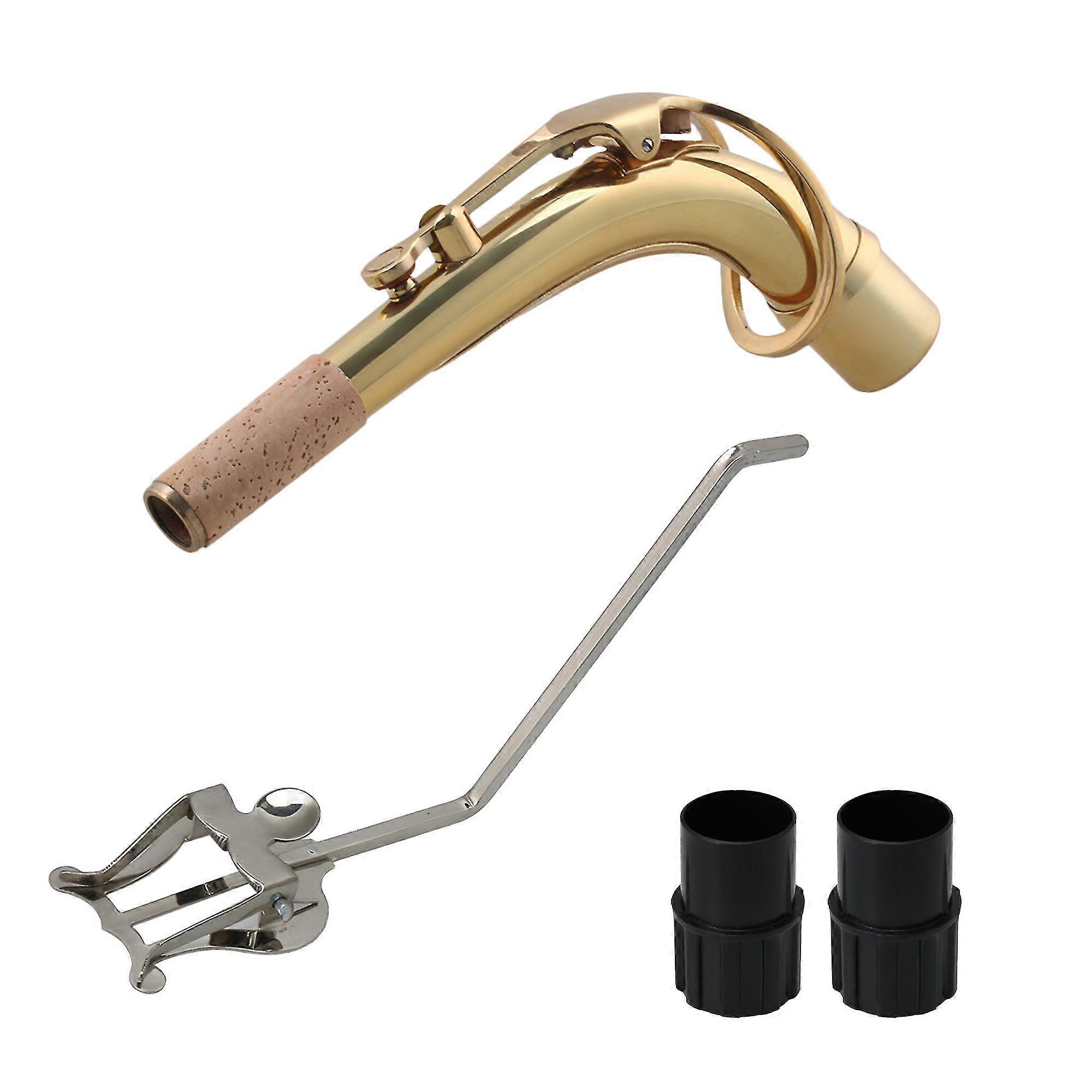 25-26 Brass Alto Elbow Bend Neck with Sax End Plug and Band Clamp-On Holder