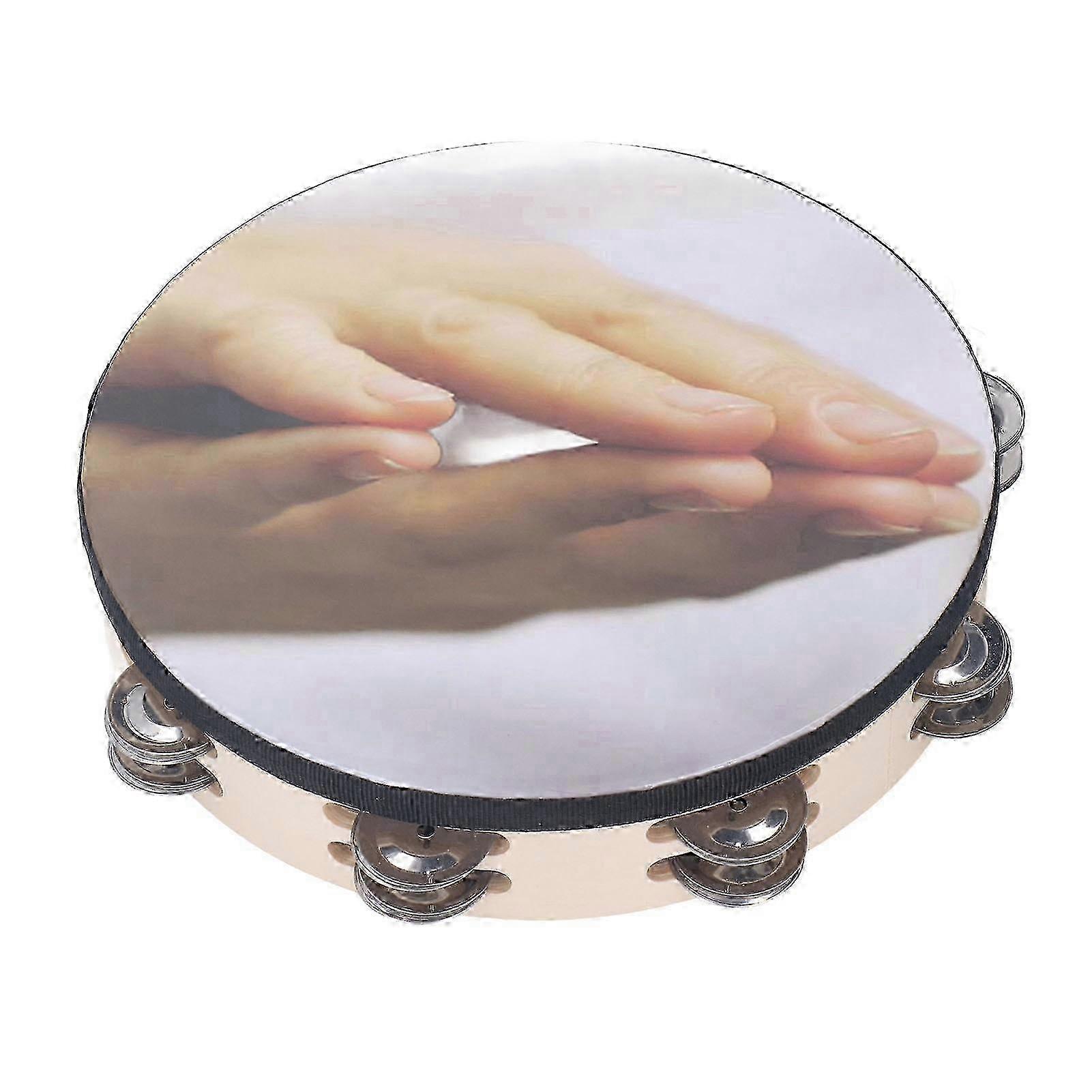10in Double Row Musical Tambourine PET Waterproof Jingles Tambourine Hand Held Percussion Drum Pray Pattern1OXFORD CLOTH STRAP: The surrounding strap of the tambourine is made of Oxford cloth, providing protection to prevent it from falling and getting damaged, as well as preventing edge curling. 2HAND POLISHED EDGES: The edges of the bell are hand polished to ensure a smoothly and seamless finish, free from any rough edges that may cause injury. The PET waterproof drum surface is soft and flexible, with vibrant ink printing that adds a touch of resilience. 3DOUBLE ROW STAINLESS STEEL BELLS: The tambourine is equipped with double layer stainless steel bells, producing a clear and melodious sound when shaken. It is suitable for accompaniment in music bands or as an introduction to music for children. 4ERGONOMIC DESIGN: The musical tambourine is designed to fit comfortably in your hand, making it easy to grasp and shake without straining your hand or wrist. 5VERSATILE AND FUN: Whether used for musical performances, educational purposes, or recreational activities, this handbell offers a fun way to engage with music and create beautiful sounds. Note: Due to the light and screen setting difference, the item's color may be slightly different from the pictures. Please allow slight dimension difference due to different manual measurement.