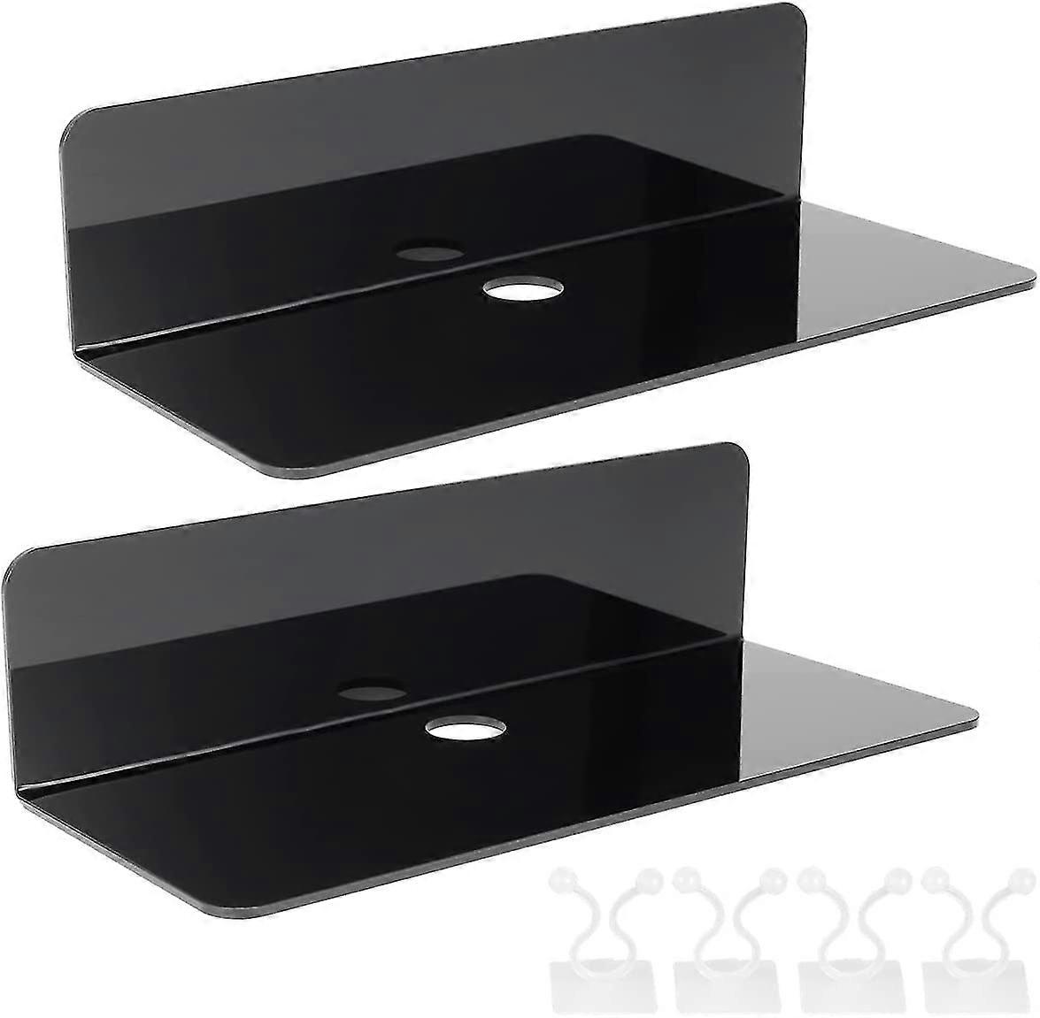 2pcs Acrylic Floating Wall Shelves Sturdy And Durable Floating Display Rack With Stickers And Hanging Clip Wall-mounted Storage Rack