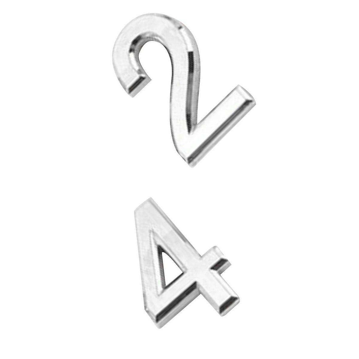 2Pcs Silver Plastic Self-Adhesive House Hotel Door Number 4 and Number 2