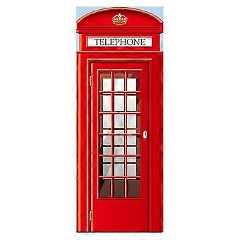 2pcs London Telephone Box Phone Booth Door Fridge Sticker Imitation 3D Door Sticker DIY Self Adhesive Waterproof Mural Decal Bedroom Home Decor(Red)