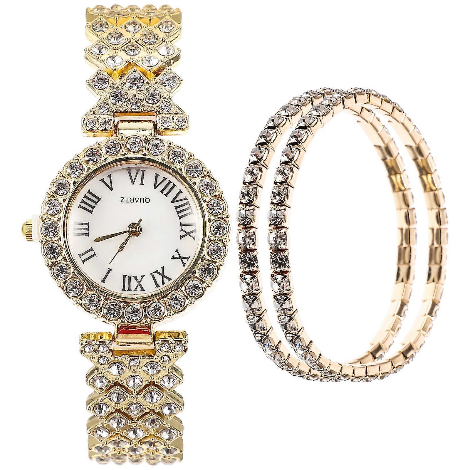 2pcs Fashion Rhinestone Watch and Diamond Bracelet Quartz Watch for Lady Girls