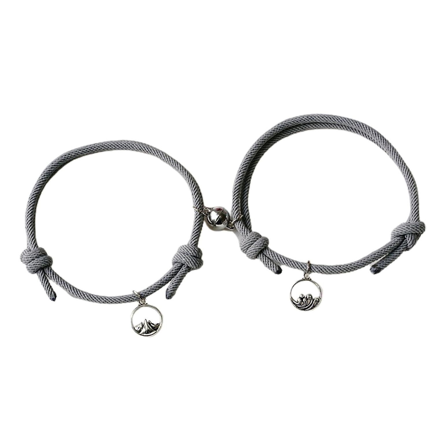 2Pcs Adjustable All-match Magnet Couple Braided Bracelet Fashion Jewelry