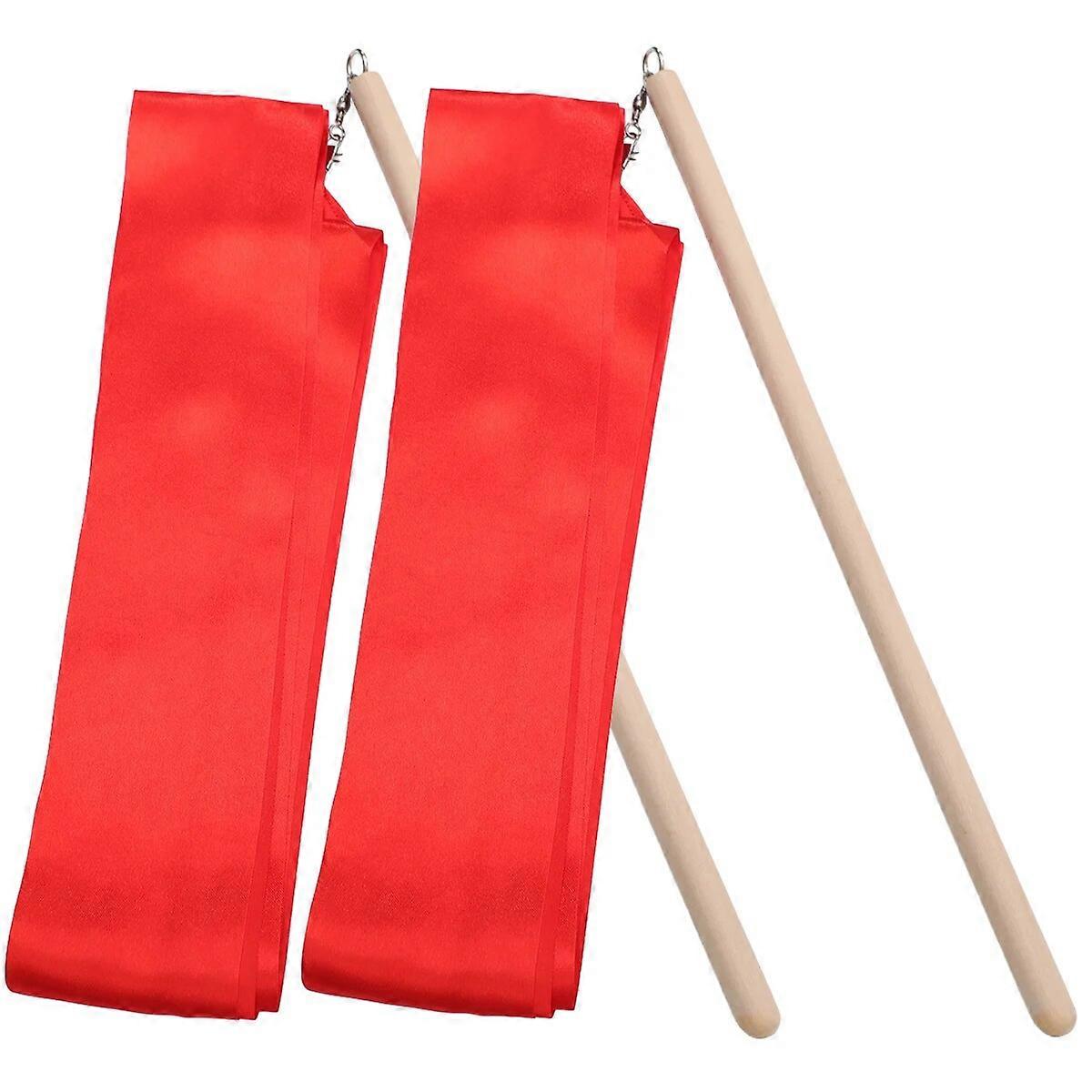 2Pcs Dance Ribbons Streamers Kids Gymnastics Sticks Shows Artistic Dancing Twirling ( Red )