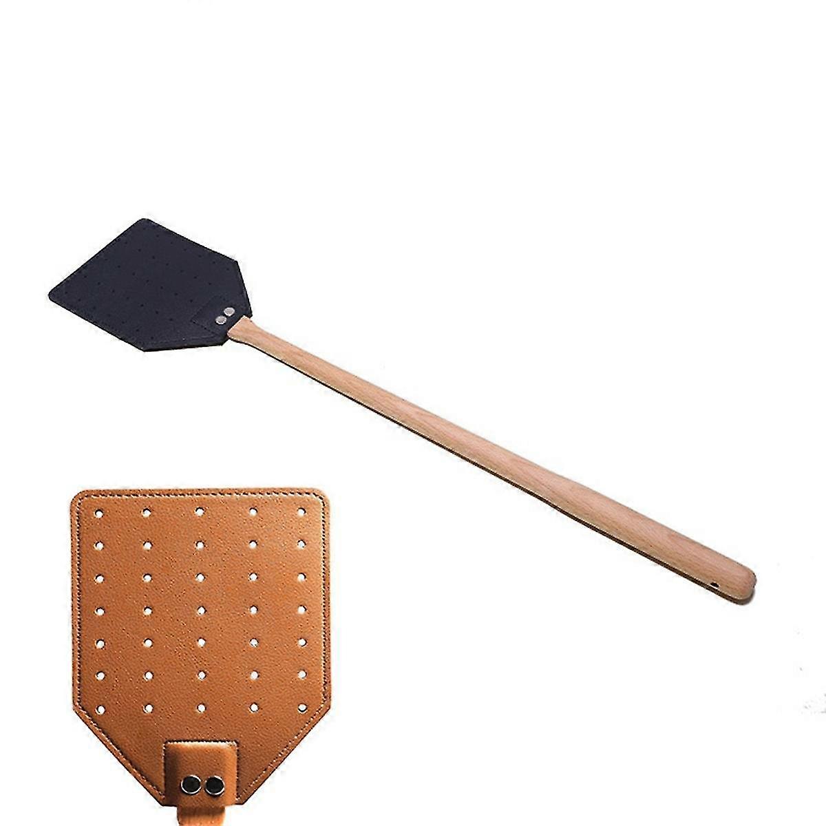 Efficient catching: designed to easily catch big or small insects. The aerodynamically spaced holes more effective in flying objects, ensuring efficient catching every time. and elegant: Our double-sided PU leather swatter is of high quality and treated with a smooth process on both sides, giving it a and elegant look. It ensures long-lasting performance, making it a great investment for your home. Reliable construction: Our fly swatter uses stainless steel rivets to connect the PU leather to the wooden handle, ensuring sturdy joints. This prevents the from off during use, ensuring a reliable and safe swatting experience. Comfortable grip: Our bench wood handle is designed for easy gripping, fitting comfortably in the palm of the hand for convenient and flexible use. It's practical for adults of all hand sizes, making it easy to use for extended periods. Easy storage: This saves space and keeps it readily accessible whenever needed, making storage a breeze. Colour:As Shown Material:Wood+PU Package Contents: 2 x Long-handled fly swatter Only the above package content, other products are not included. Note: Light reflection and different displays may cause the color of the item in the picture a little different from the real thing. The measurement allowed error is +/- 1-3cm.