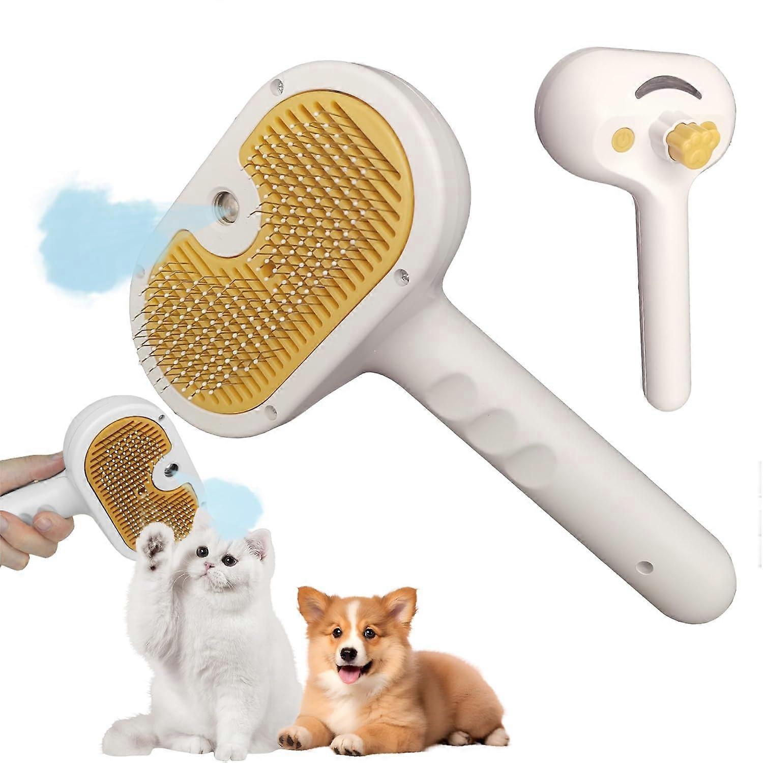 3-in-1 Cat Steam Brush - Spray with Water Tank & Self-Cleaning for Long/Short Hair Cats & Dogs