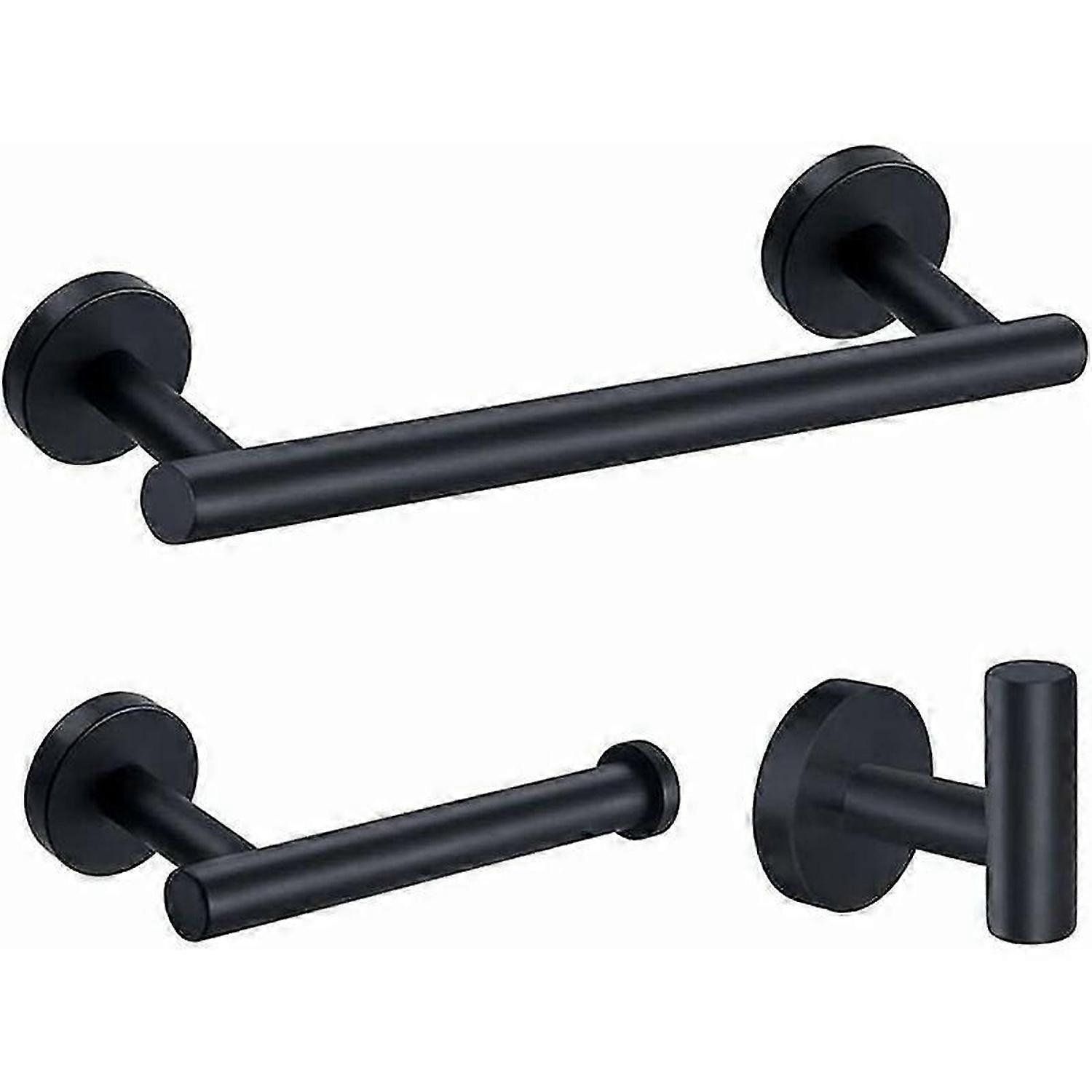 3 Pcs Towel Rack Stainless Chrome Wall Mounted Towel Rack Bathroom Accessories Sets 12"/305mm Towel Rack + Toilet Paper Holder + Towel Hooks (Black)