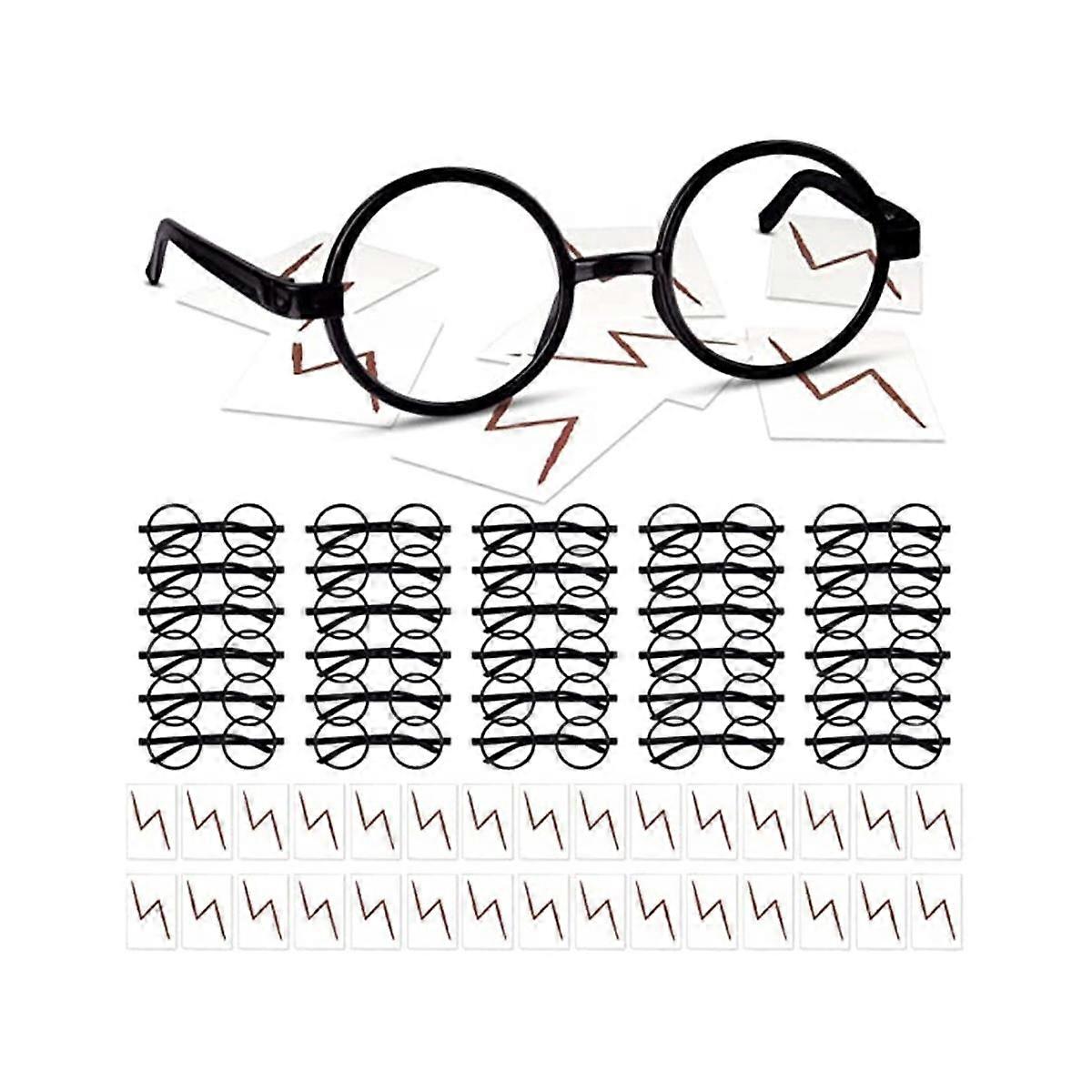 30 Pieces Wizard Round Glasses Frame No Lenses Eyeglasses with 30 Pieces Bolt Tattoos Halloween Par