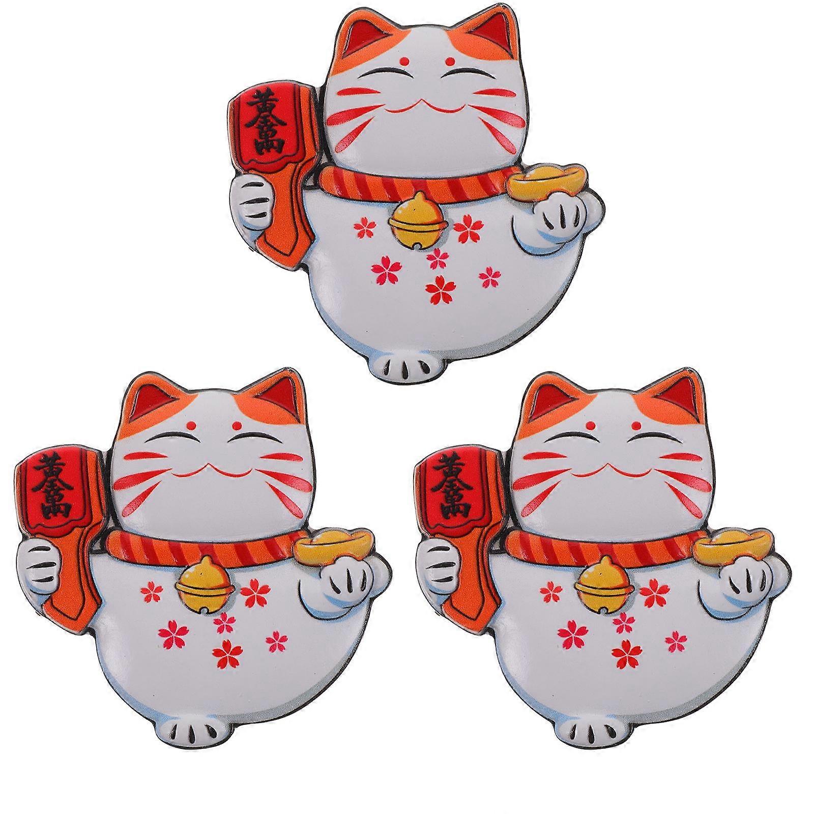 3pcs Fortune Cat Fridge Magnets Adorable Cat Refrigerator Magnets Decorative Fridge Magnets