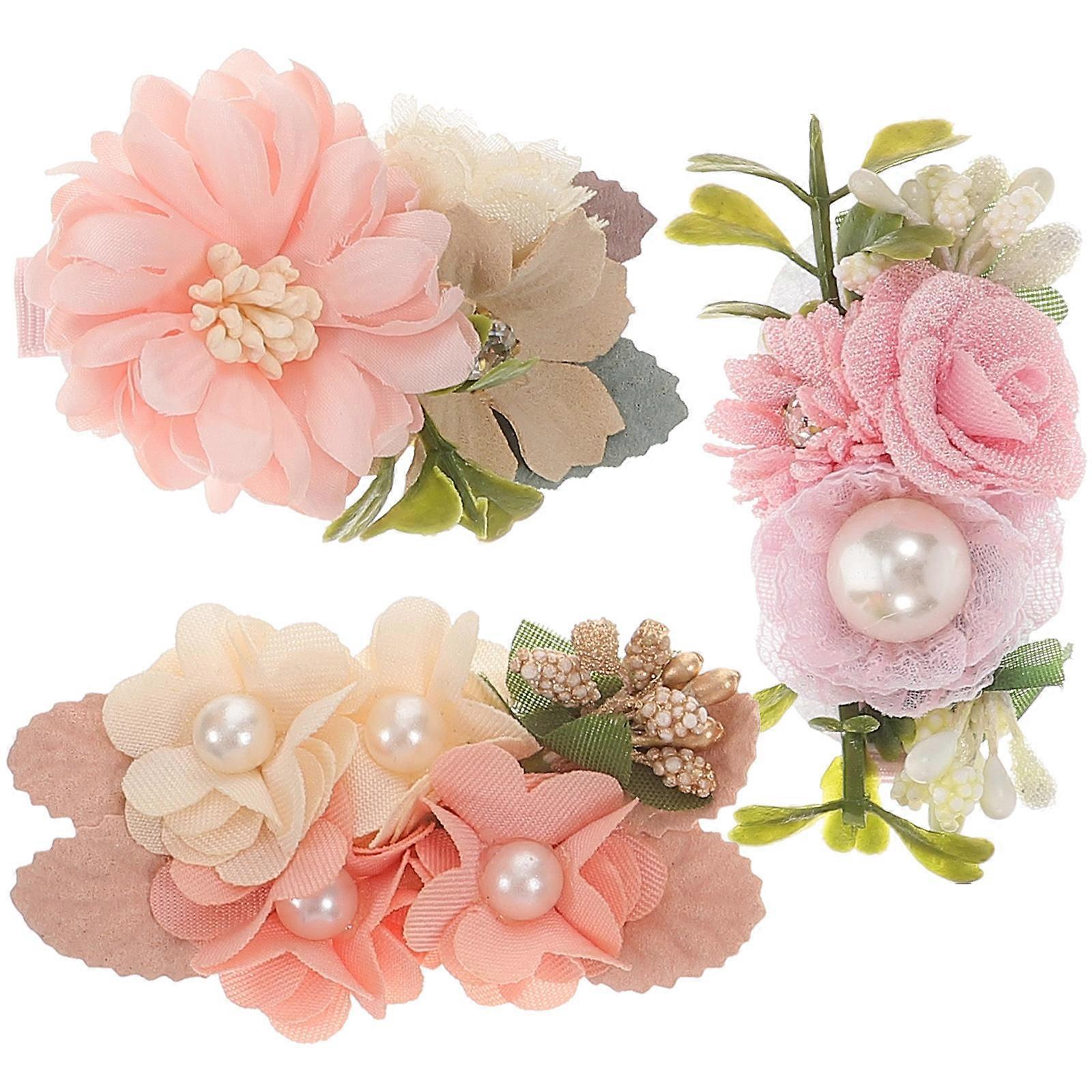 3pcs Floral Hair Clips with Faux Flowers and Pearls – Comfortable & Durable Barrettes for All Day Wear