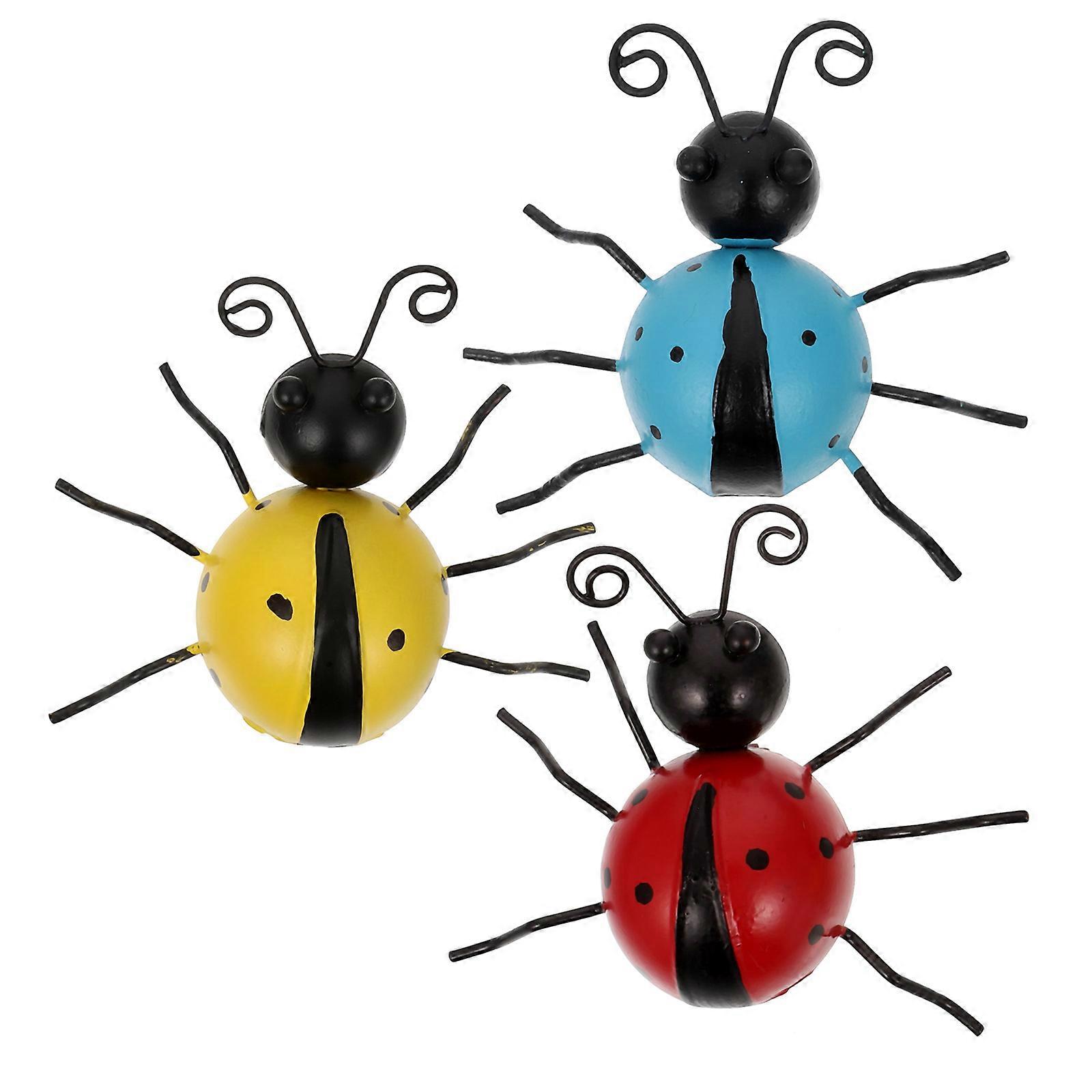 3pcs Simulated Ladybug Ornaments Iron Art Decor for Garden, Lawn, and Outdoor Spaces – Fun & Creative Home Decoration Models