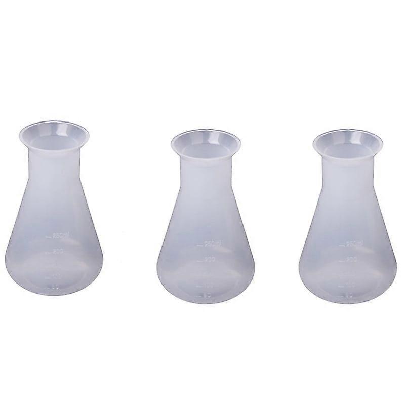 3X Plastic Transparent Laboratory Chemical Erlenmeyer Flasks Container Bottle - 250 Ml