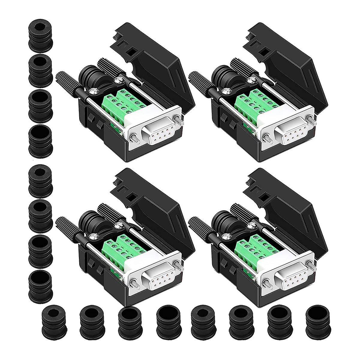4PCS DB9 Female Breakout Connector,DB9 Solderless RS232 D-SUB Serial To 9-Pin Port Terminal Adapter