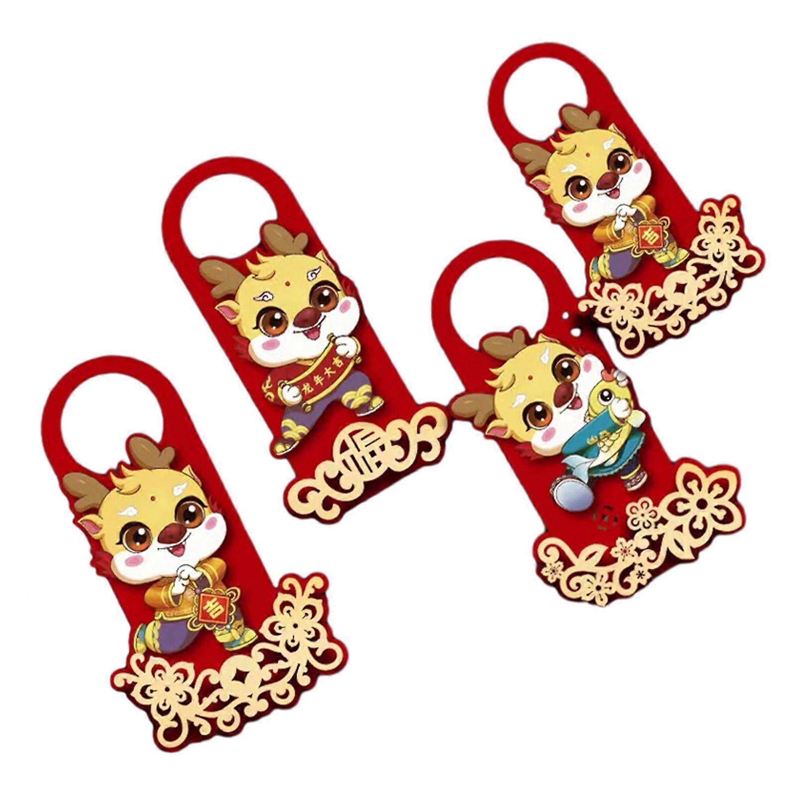 4 Pieces Chinese New Year Door Handle Pendant Door Hanger Cartoon Spring