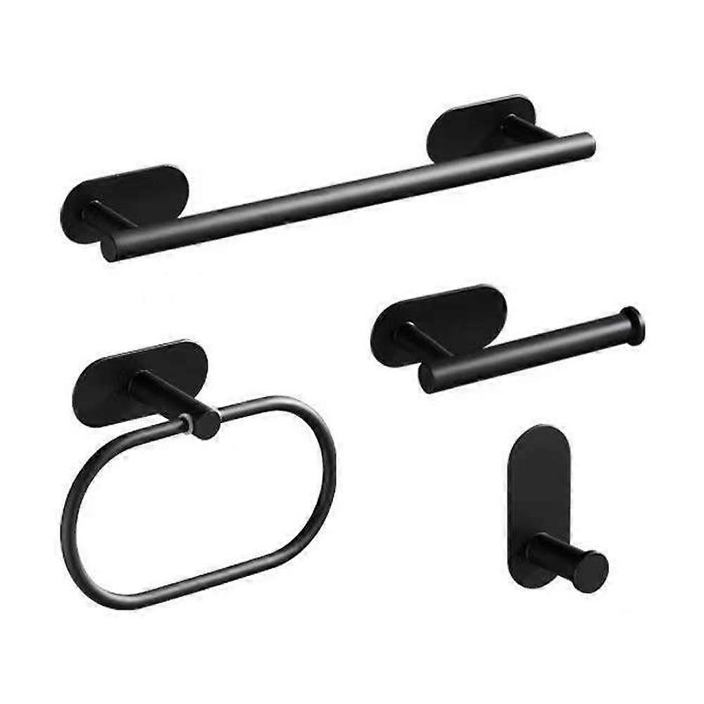 4-Pack Punch-free Bathroom Set Black Wall Mounted, Robe Hook, Wall Toilet Paper Holder, Towel Ring, Towel Bar 16,Bathroom Accessories, Towel rack, 304