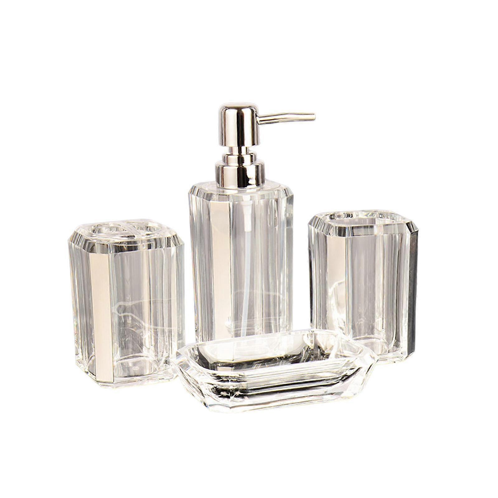 4Pcs Bathroom Accessories Set Lotion Bottle Toothbrush Holder for Home Decor Argent